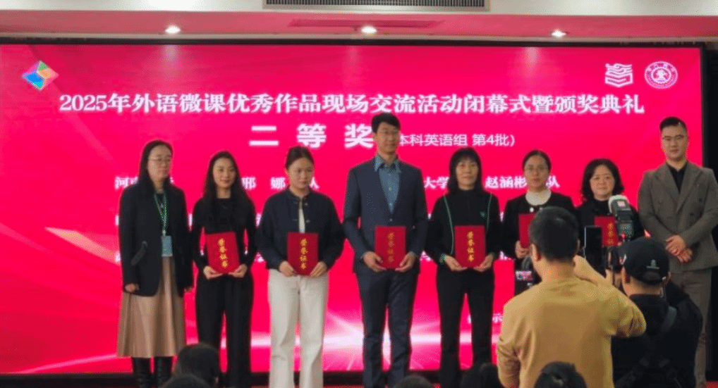 本网讯(通讯员 杨建兵)10月25日,2025年全国外语微课优秀作品全国决赛在西安交通大学隆重举行。402永利集团陈玢、陈明芳、潘俊、张云峰、侯新婷五位教师组成的教学团队,凭借扎实的教学功底与前沿的数字技术融合能力,荣获本科英语组全国二等奖,402永利集团同时荣获优秀组织奖,充分展现了公司在数智化外语教学改革中的创新实力与团队风采。