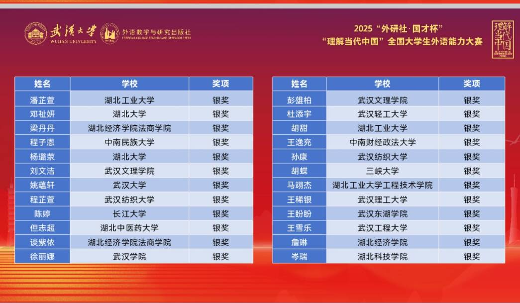 本网讯 (通讯员 徐昕慧) 2025年11月1日,2025年“外研社•国才杯”“理解当代中国”全国老员工外语能力大赛(湖北赛区)口笔译组湖北省复赛在武汉大学顺利举行。