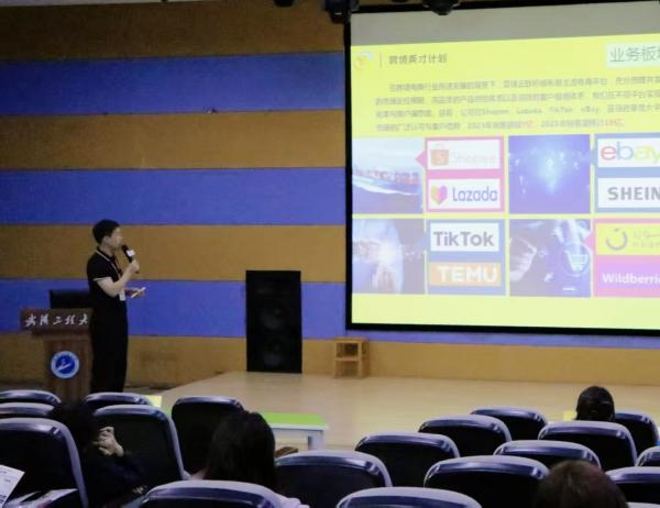 随后,寰球云联企业招聘负责人登台,全面展示了企业在跨境电商领域的创新实力、业务前景与人才发展理念。作为湖北省规模最大的跨境电商企业之一,寰球云联在TikTok、亚马逊、eBay等全球主流平台持续发力,拥有20余个自有品牌和近20个海外仓。此次宣讲会搭建起产业与人才对接的桥梁,让学子们直观感受到龙头企业的发展潜力与行业机遇。
